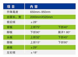 YC-D3型电动液压手术床具有五功能调节(整体升降、前后倾、左右倾、背板上折下折、前后平移)等功能,驱动方式为独立液压油缸操作,液压系统主要部位均采用原装进口部件,使该床整体性能更加稳定可靠, 经久耐用,手持操控器采用微电脑系统具有自锁功能,可轻巧的调节移动各项工作与角度。
