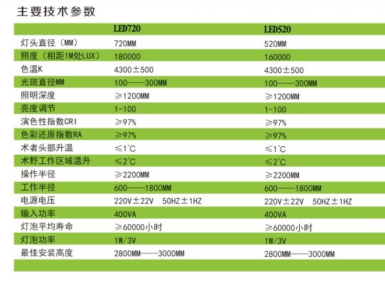 YCLED720/720型花瓣式无影灯灯珠采用先进德国进口“欧司郎(OSRAM)”品牌,采用特殊的光学系统,360°均匀照射在被观察的物体上,无阴影产生,清晰度高,极佳出色的色彩重演度及标准自然白光,真实在现组织颜色,并做到任意光照强度条件下色温恒定不变,耐冲击、不易破碎,无汞污染,发出的光线不含红外线和紫外线的成分辐射污染。